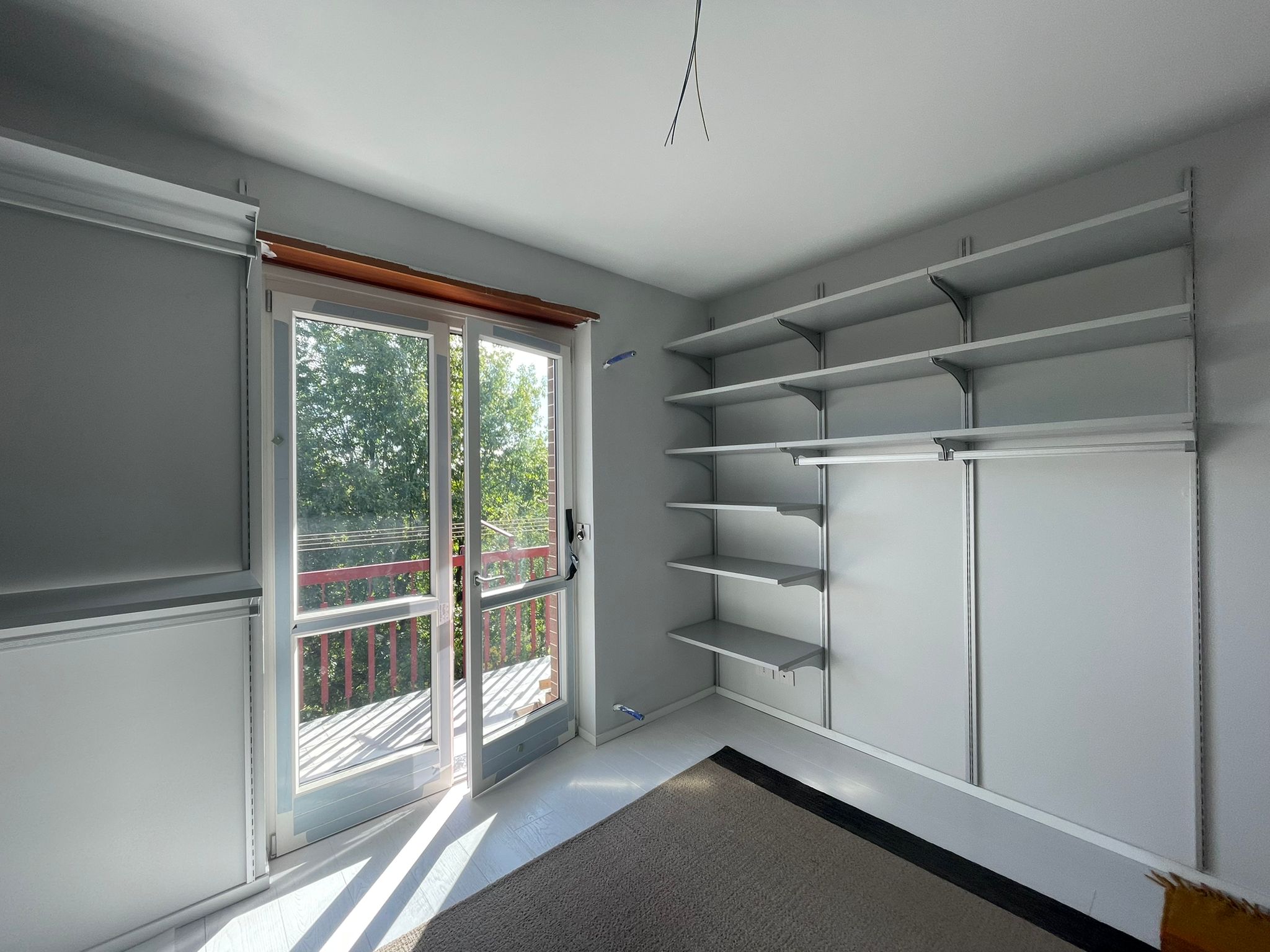 Cabina armadio e porta scorrevole montata. Lavoro completato.